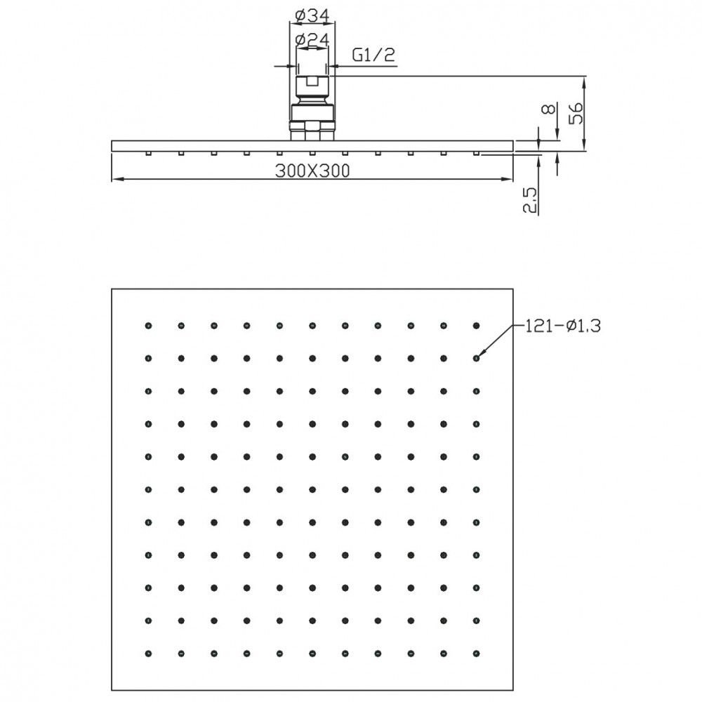 Žalvarinė SlimLine, kvadratinė , 1-funkcinė dušo galva.