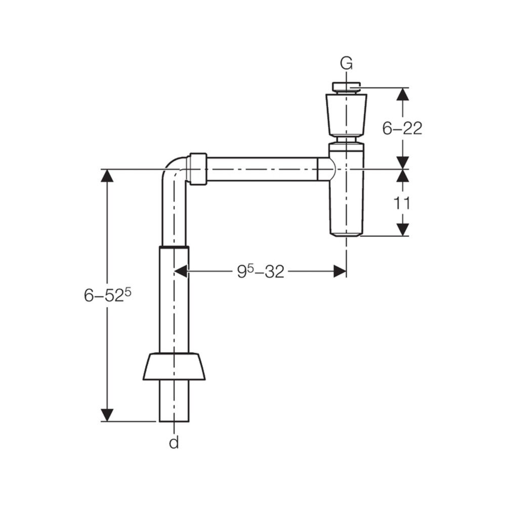Geberit butelinis sifonas praustuvams, su vožtuvo gaubteliu ir manžetu, vertikalus nuotakas, teleskopinis vamzdis: d=40mm, G=1 1/4″, chrome / blizgus