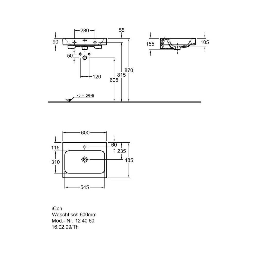 Geberit iCon praustuvas: 60cmx48.5cm, Maišytuvo skylė viduryje,