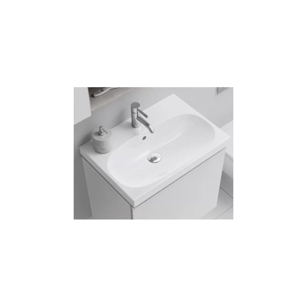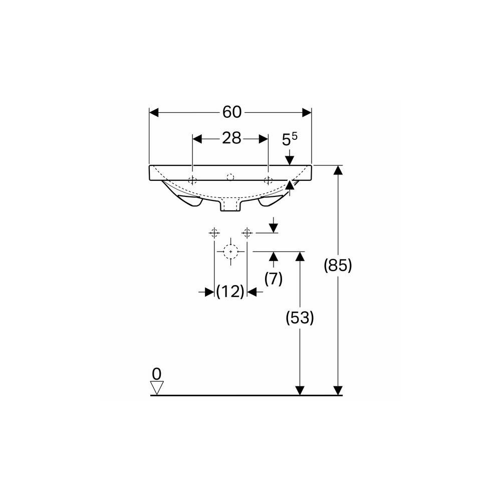 Geberit Acanto praustuvas: 60x48cm, Maišytuvo skylė viduryje, Nutekamasis vamzdis matomas, balta