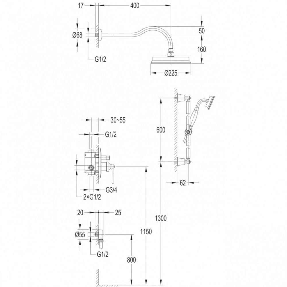 Pavadinimas: OMNIRES Armance SYSAM20CR potinkinė dušo sistema